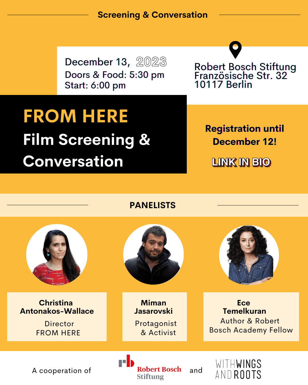 Liebe Freundinnen und Unterstützerinnen, nach mehr als zwei Jahren Pandemie, zahlreichen (online) Filmfestivals in mehr als acht verschiedenen Ländern auf vier Kontinenten, freuen wir uns sehr, dass unser Dokumentarfilm FROM HERE jetzt auf Kinotour in Deutschland geht! Ab Mitte Mai reisen die Regisseurin Christina Antonakos-Wallace und der Protagonist Miman Jasarovski zu Screenings nach Köln, Hamburg, […]