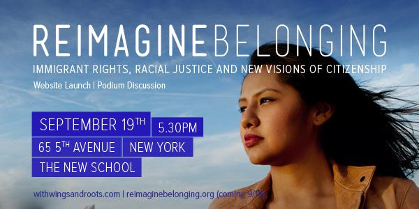 Mark your calendars for the launch of our interactive website Reimagine Belonging – September 19th from 5:30-8:30pm at The New School’s brand new Hoerle Lecture Hall and Event Cafe. Visitors will attend a panel discussion on the intersections of immigrant rights, racial justice, and visions of citizenship; explore an installation of our timelines of migration, citizenship, and belonging; and have the chance to share their own stories for the site. Our Berlin event was a huge success and we can’t wait to continue in New York. Please RSVP today!